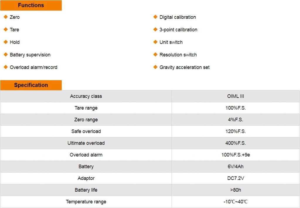 • 具有開機零點追蹤、零點重置、全秤量扣重、自動或手動校正、顯示保留及自動省電關機等功能。